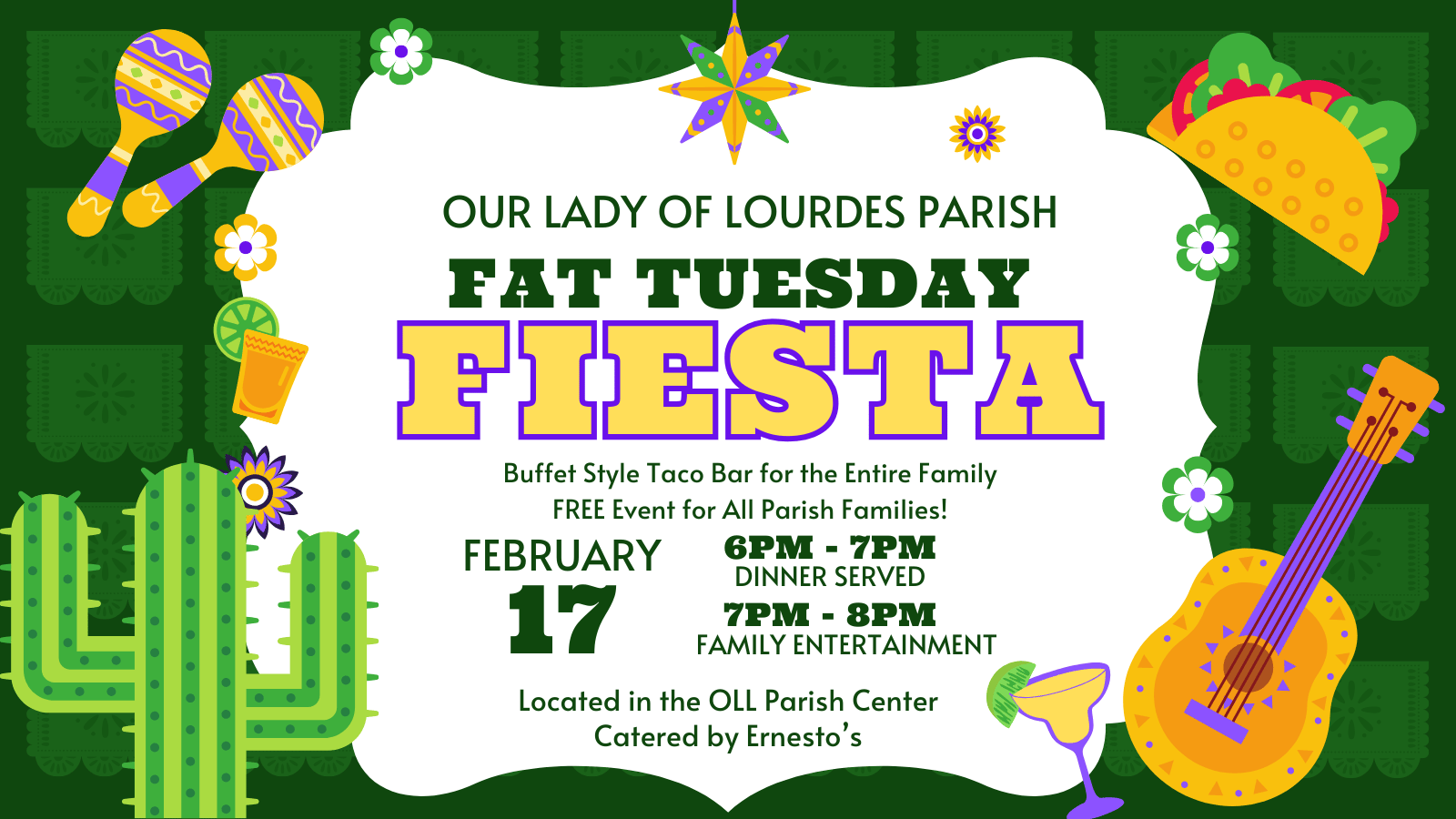 Free taco bar dinner catered by Ernestos!